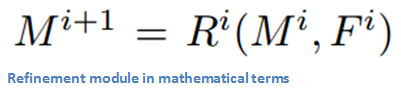 Let’s dig a little deeper into the specifics of this refinement module. The goal of this module is to counter the effects of the pooling layers in the DeepMask pipeline (the layers that shrunk the 224x224 image to 14x14) by upsampling the generated masks in a way that also takes into account the feature maps that were created in the bottom-up pass (You can think of DeepMask = bottom-up and Refinement Module = top-down). A mathematical way of looking at it is that the refinement module R is a function that generates an upsampled mask M that is a function of the mask in the previous layer as well as a function of the feature map F. The number of refinement modules used would be equal to the number of pooling layers used in the DeepMask pipeline.