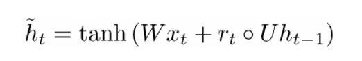 Now, if you take a closer look at the formulation, you’ll see that if the reset gate unit is close to 0, then that whole term becomes 0 as well, thus ignoring the information in ht-1 from the previous time steps. In this scenario, the unit is only a function of the new word vector xt.
