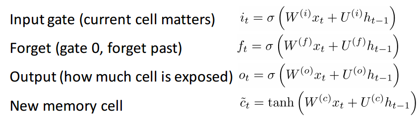 - If zt ~ 1, then ht completely ignores the current word vector and just copies over the previous hidden state (If this doesn’t make sense, look at the ht equation and take note of what happens to the 1 - zt term when zt ~ 1).