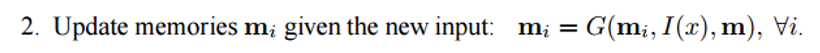The next step would be taking the feature representation I(x) and allowing our memory m to be updated to reflect the new input x we’ve received.