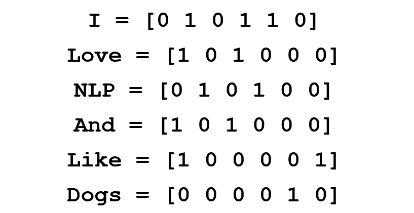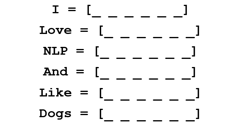 Since deep learning loves math, we’re going to represent each word as a d-dimensional vector. Let’s use d = 6.