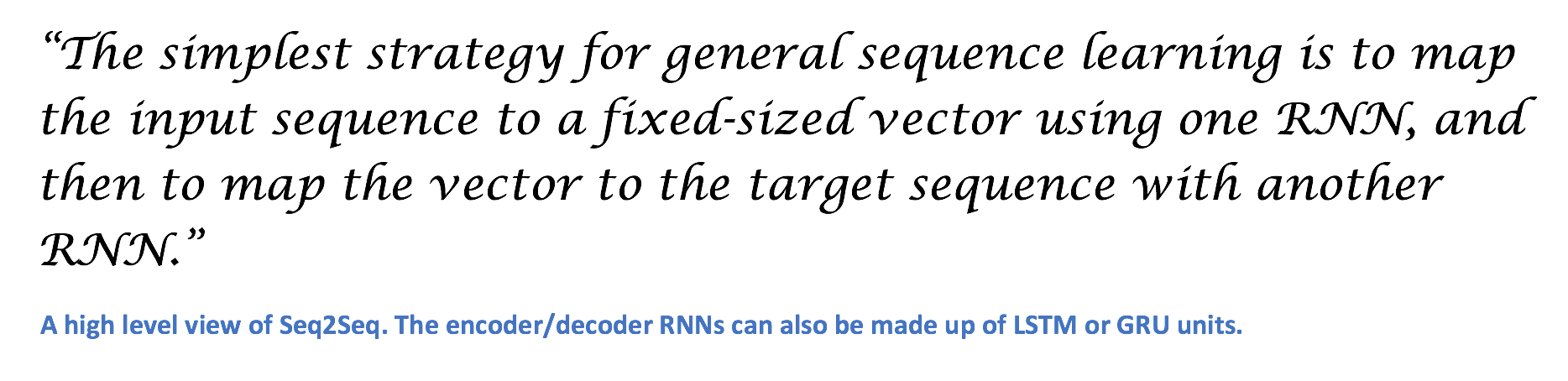 Chatbots that use deep learning are almost all using some variant of a sequence to sequence (Seq2Seq) model. In 2014, Ilya Sutskever, Oriol Vinyals, and Quoc Le published the seminal work in this field with a paper called “Sequence to Sequence Learning with Neural Networks”. This paper showed great results in machine translation specifically, but Seq2Seq models have grown to encompass a variety of NLP tasks.