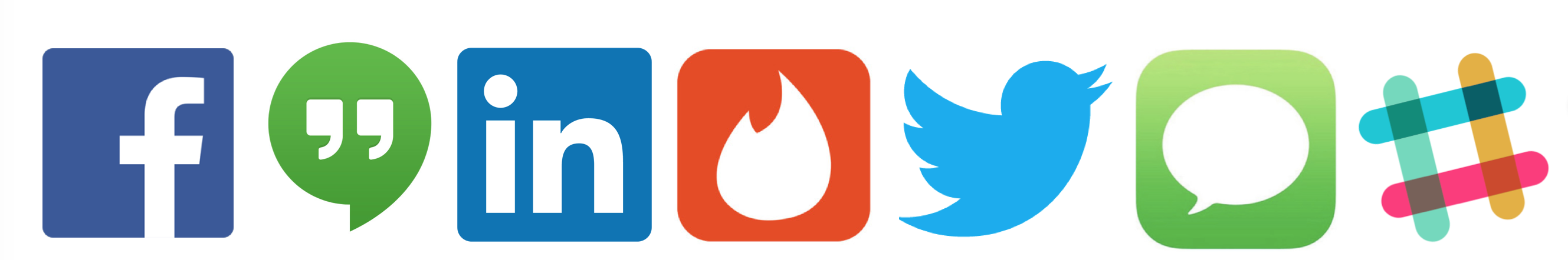 Alright hmm, let’s see how we can do this. We need to create a large dataset of conversations that I’ve had with people online. Over the course of my time on social media, I’ve used Facebook, Google Hangouts, SMS, LinkedIn, Twitter, Tinder, and Slack to stay in touch with people.