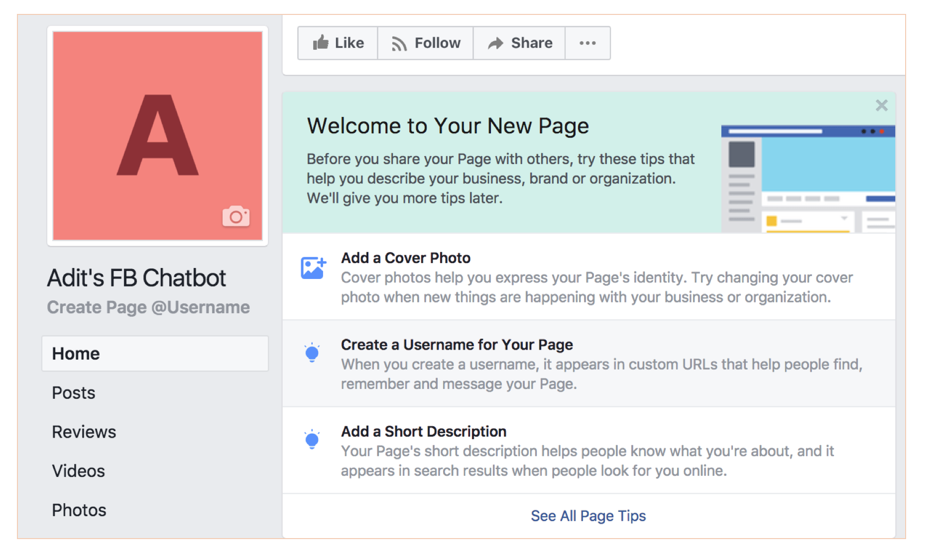 - Create the Facebook chatbot.