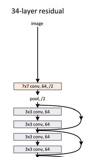 The idea behind a residual block is that you have your input x go through conv-relu-conv series. This will give you some F(x). That result is then added to the original input x. Let’s call that H(x) = F(x) + x. In traditional CNNs, your H(x) would just be equal to F(x) right? So, instead of just computing that transformation (straight from x to F(x)), we’re computing the term that you have to add, F(x), to your input, x. Basically, the mini module shown below is computing a “delta” or a slight change to the original input x to get a slightly altered representation (When we think of traditional CNNs, we go from x to F(x) which is a completely new representation that doesn’t keep any information about the original x). The authors believe that “it is easier to optimize the residual mapping than to optimize the original, unreferenced mapping”.